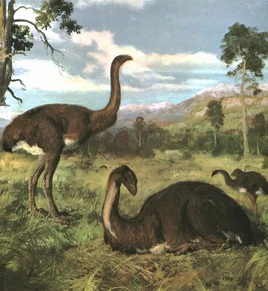Моа (лат. Dinornithiformes) — отряд гигантских птиц, достигавших в высоту около 3,6 м и имевших массу около 250 кг. Рацион данных птиц преимущественно составляли листья, побеги и фрукты. Они вымерли около 1500 года. По неподтверждённым свидетельствам, отдельные представители вида Megalapteryx didinus ещё встречались в конце XVIII-начале XIX века.