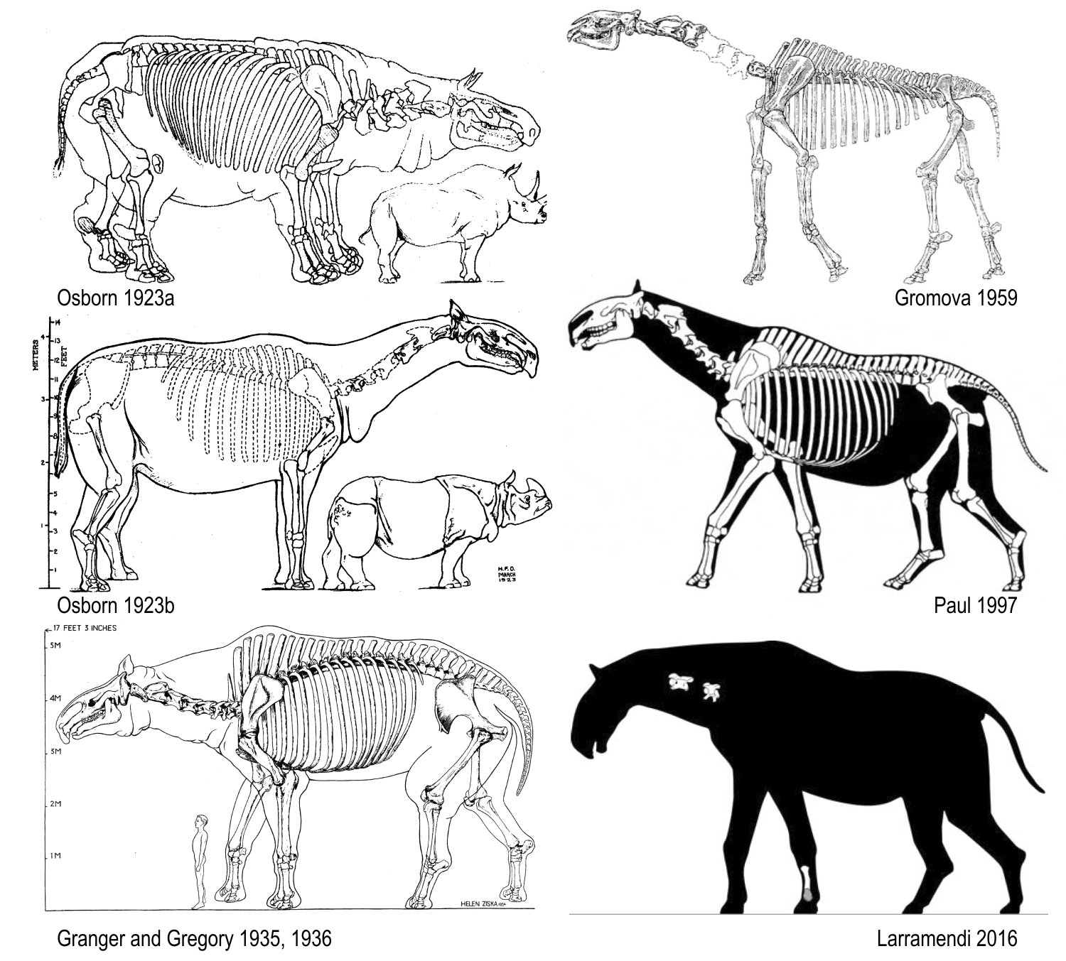Таким образом, мы переходим к другой скелетной реконструкции, опубликованной Грегори Полом в 1997 году, когда он специализировался на моделях динозавров и расчете их массы тела. Эта реставрация включала данные из тех же образцов, которые использовались в вышеприведенных вариантах и получилась чем то средним, между более тяжелыми реставрациями начала 20-го века и интерпретацией конца 1950-х годов. В общем виде она глядит скорее как гигантская лошадь, чем гигантский носорог или громоздкий жираф. Интерпретация Пола до сих пор избегала серьезной критики, напротив, Ларраменди использовал её в своей работе 2016 года и описал эту реконструкцию как «наиболее точную», хотя и не уточнил, почему ее следует считать превосходящей предыдущую версию.